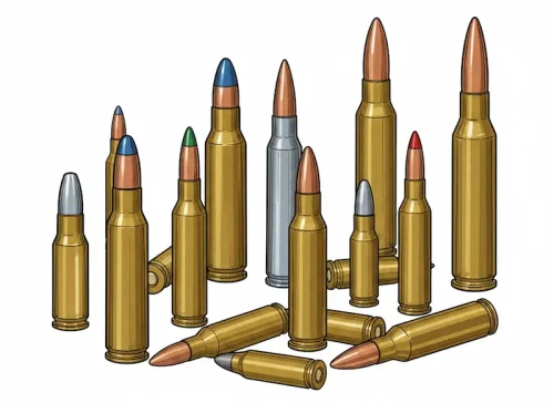 - 中間弾薬:拳銃弾とフルサイズライフル弾の中間に位置し、アサルトライフルなどで使用される弾薬