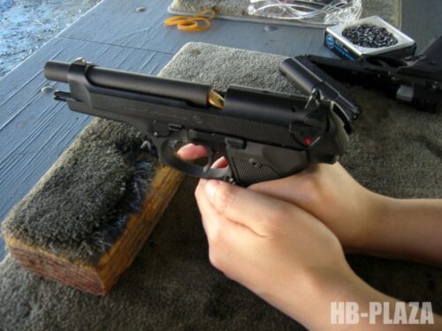 帰宅して銃を手にとってみて、第一印象よりさらに気に入ってきました。小ぶりに見えるのに重量があり、ルガーを持ったあとで92FSに持ち代えると、92FSが本当に軽量に作られている事が実感できます。バランスもよく、ブルバレルもなんだかサイレンサーの様に見えてカッコイイ。92FSの様にマット表面処理していないので、鉄の黒光りを見ることができ、お気に入りの一丁となりました。