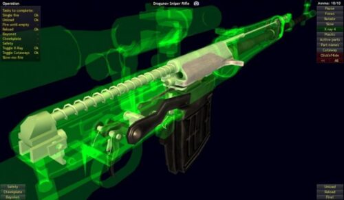 射手はストックを肩に当て、頬付けし、両手で銃を支えることで銃を安定させ高い命中率を得られます。