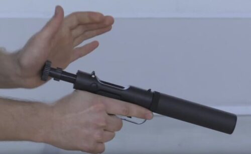 とはいえ、こんな大きなサプレッサーですから、セミオートではなく手動で一発ごとにスライドを後退させる必要があります。エジェクションポートが開放されないため従来のセミオートバージョンより減音効果が高く、おまけにサプレッサーを掴んでポンプアクションが可能という面白いトカレフです。
